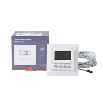 тип управления: электронный; способ монтажа: скрытый; минимальная температура 5 °C; максимальная температура 40 °C; максимальная нагрузка 3500 Вт; регулирование температуры теплого пола; регулирование температуры воздуха;