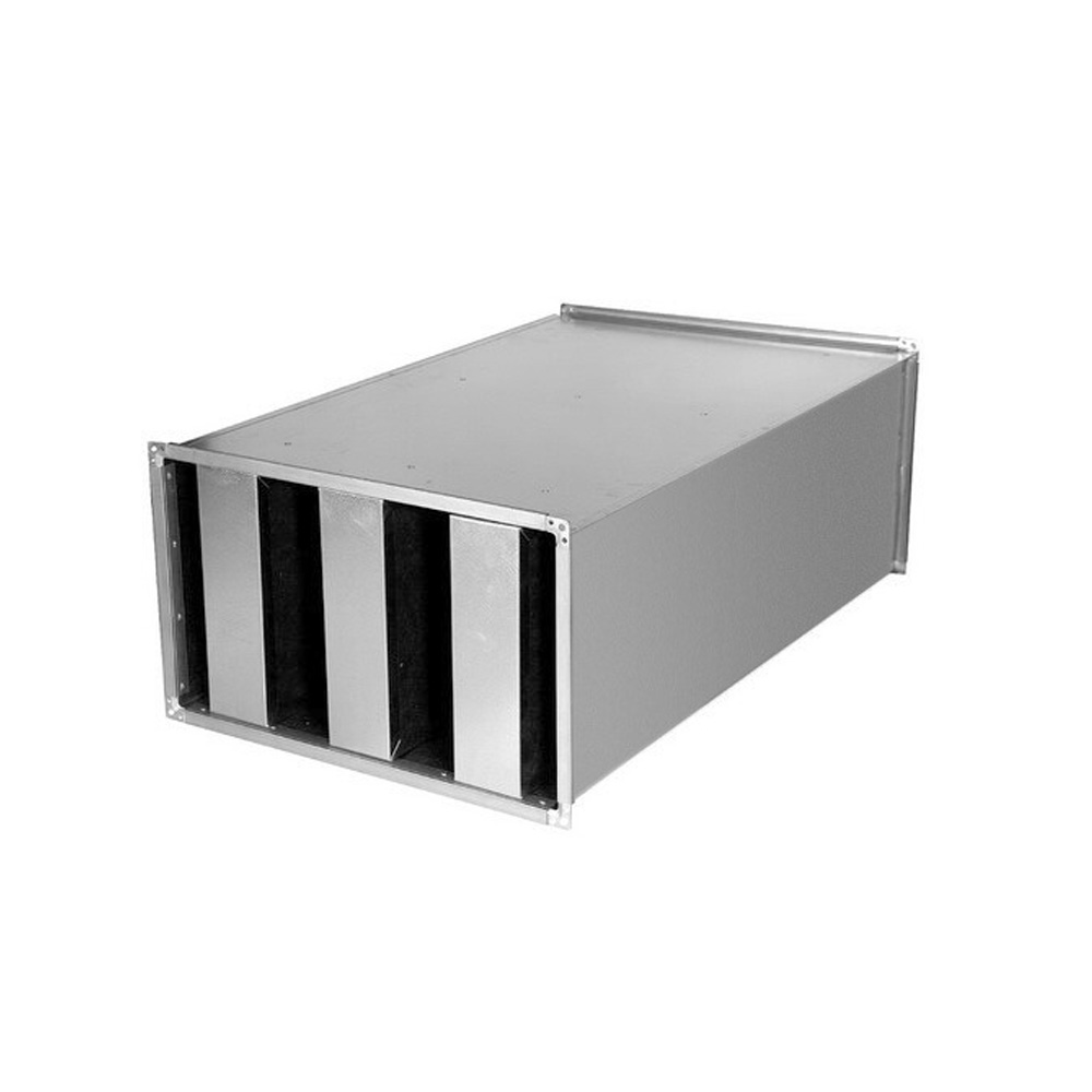 Особенности и преимущества: эффективное снижение уровня шума, высокие акустические характеристики шумоглушителей за счет использования негорючей базальтоволокнистой минеральной ваты, для предотвращения выдувания частиц минераловаты кассеты обтянуты стеклохолстом, монтаж в любом положении.
